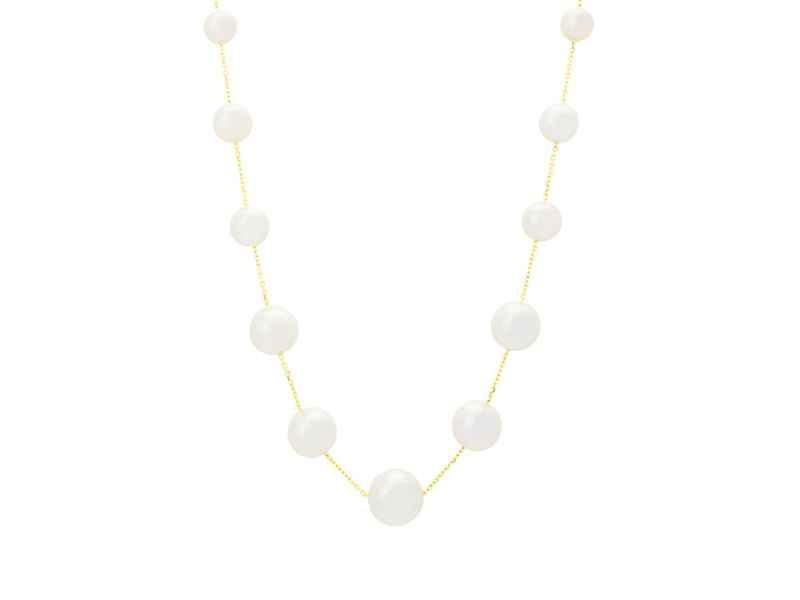 NECKLACE, 18K gold, cultured freshwater pearls, graduated approx. 3,0 - 8,0 mm, length 42/47 cm, weight 7,3 g.