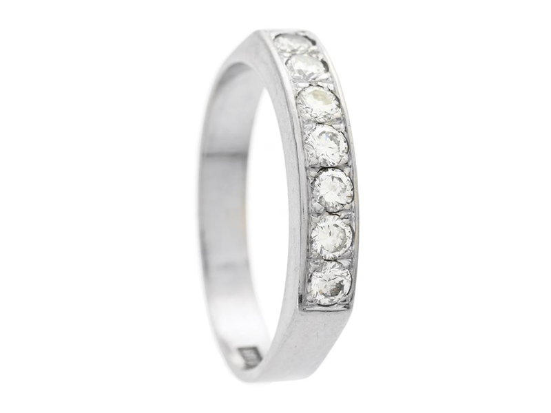 ETERNITY RING, 18K white gold, 7 brilliant cut diamonds 0,42 ctw according to engraving, approx. TW-W/VS, size 17,75 mm, weight 3,8 g, one diamond damaged, one diamond with notches on the culet