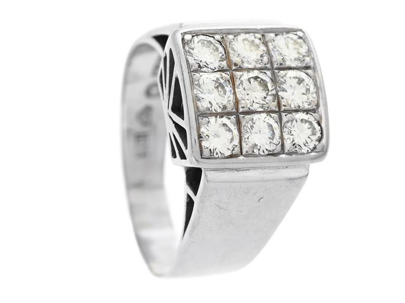 ATELIER AJOUR, ring, 18K white gold, 9 brilliant cut diamonds 0,72 ctw according to engraving, approx. TW-W/VS-SI, Stockholm, size 16 mm, weight 6,7 g, altered ring size.