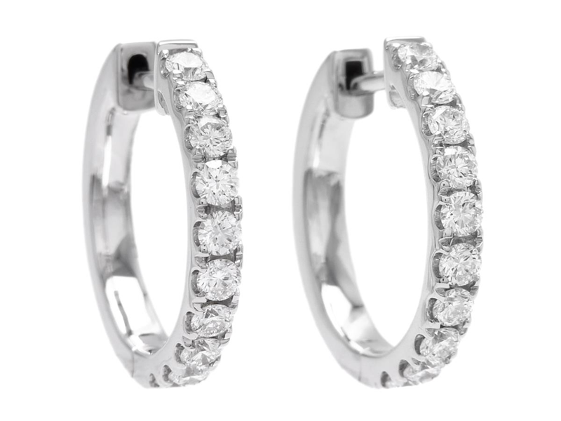 HOOP EARRINGS, 18K white gold, 20 brilliant cut diamonds 0,51 ctw, approx. TW/VS, pushback, height 15,0 mm, width 2,0 mm, weight 3,0 g.