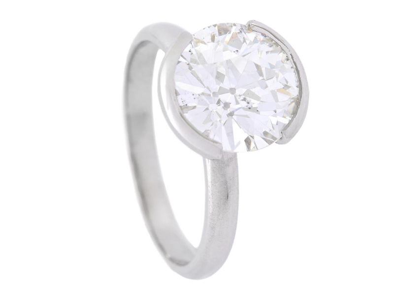 SOLITAIRE RING, platinum, old European cut diamond 3,26 ct according to engraving, approx. TCa(L)/SI2, size 17,25 mm, weight 5,5 g, small notch on the girdle.
