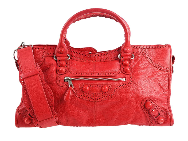 BAG, BALENCIAGA, Part Time Bag, red leather, silver-tone hardware, 41,5x21x15 cm, inside mirror, detachable shoulder strap.