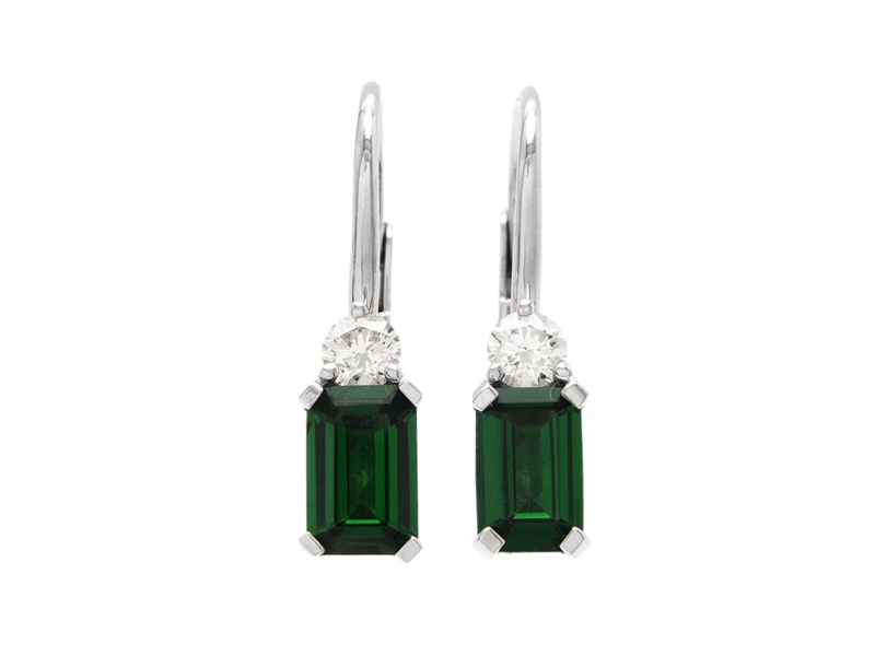 EARRINGS, 18K white gold, octagonal faceted tsavorites 0,94 ctw, 2 brilliant cut diamonds 0,18 ctw, approx. W/VS-SI, closeable hooks, length 18,0 mm, weight 2,0 g.