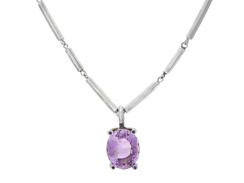 MANDELSTAM, necklace, Star Trek, sterling silver, amethyst 39,94 ct, , sapphires, length 48 cm, weight 64,6 g, original box.