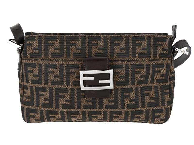 BAG, FENDI, Front Slip Pocket Shoulder Tote, dark brown Zucca Canvas, brown leather, silver-tone hardware, 29x17x9 cm.