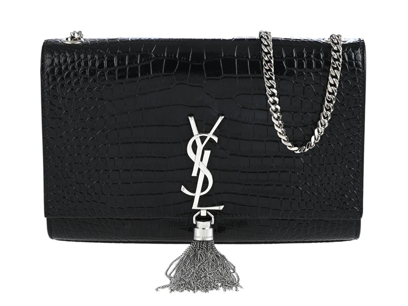 BAG, SAINT LAURENT, Kate Tassel, black Crocodile Embossed calfskin, silver-tone hardware, 25x15,5x5,5 cm.