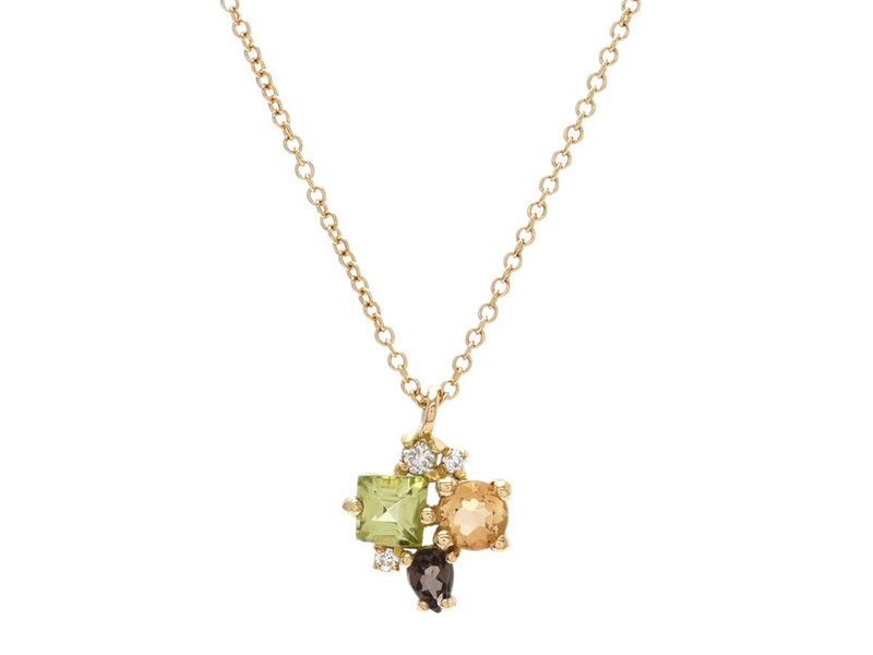 NECKLACE, 18K gold, citrine, smoky quartz and peridot, 3 brilliant cut diamonds approx. 0,03 ctw, approx. W/SI, height 10,0 mm, length 41/43/46 cm, weight 1,9 g.