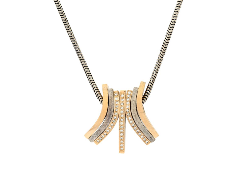 THERESIA HVORSLEV, pendants with chain, Rainbow pendants, 18K white gold/gold, brilliant cut diamonds 0,46 ctw, according to engraving, approx. TW/VS, sign, Lidköping 1999, height 30 mm, length 44 cm, weight 36,2 g. chain in sterling silver.