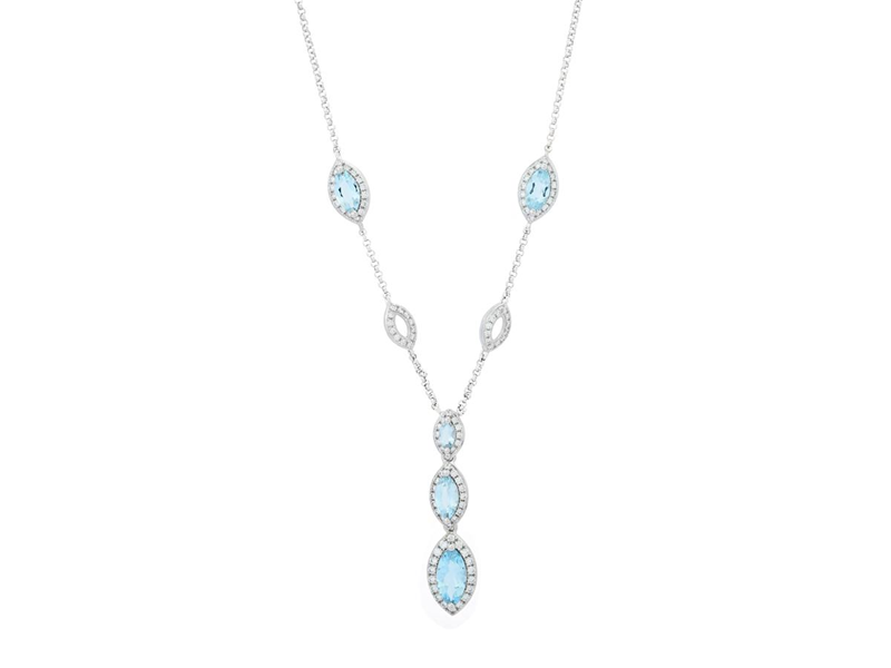 NECKLACE, 18K white gold, aquamarines approx. 1,97 ctw, brilliant cut diamonds approx. 0,38 ctw, length 46 cm, weight 4,9 g.