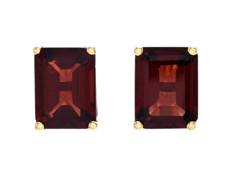 EARRINGS, 18K gold, octagonal faceted garnets 3,74 ctw, pushback, measurements 8,0 x 6,0 mm, weight 2,2 g.