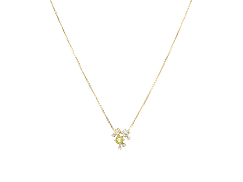 NECKLACE, 18K gold, peridot 0,28 ctw, prasiolite 0,17 ctw, lime quartz 0,11 ctw, 4 brilliant cut diamonds 0,05 ctw, approx. W/SI, length 40/42 cm, weight 2,0 g.