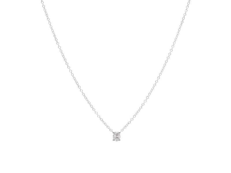 SOLITAIRE NECKLACE, 18K white gold, oval brilliant cut diamond 0,30 ct, TW(G)/VS1, GIA Diamond Dossier 2537699433, length 42/45 cm, weight 2,2 g.