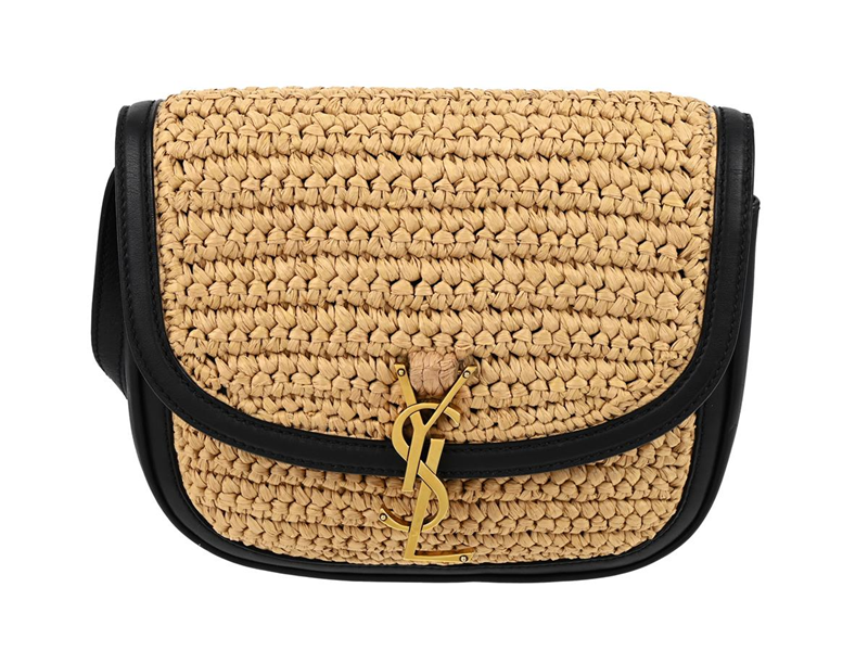 BAG, SAINT LAURENT, Kaia, beige raffia canvas, black leather, gold-tone hardware, 22x20x6 cm, certificate.