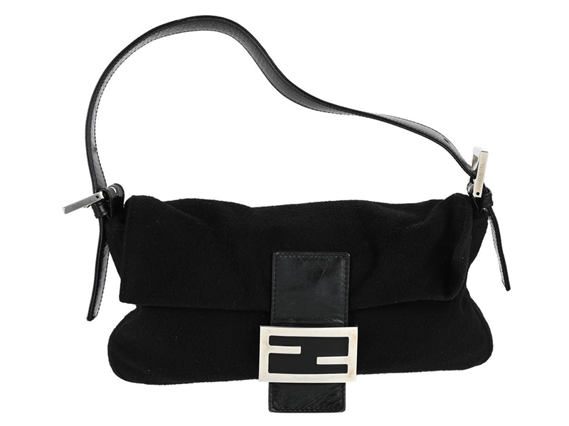 BAG, FENDI, Baguette cut, black suede, leather, silver-tone hardware, 26x14x3,5 cm.