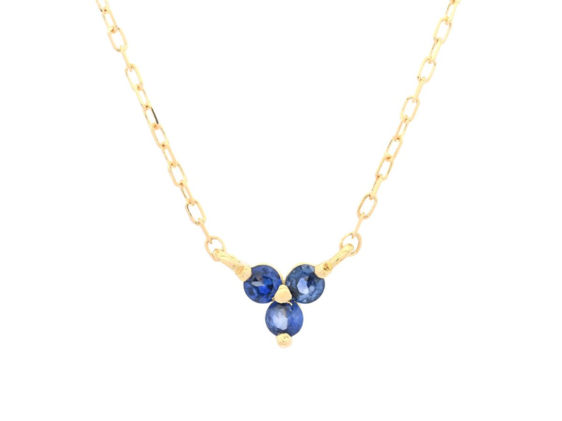 NECKLACE, 18K gold, 3 round faceted sapphires, height 4,5 mm, length 42/45 cm, weight 1,2 g.