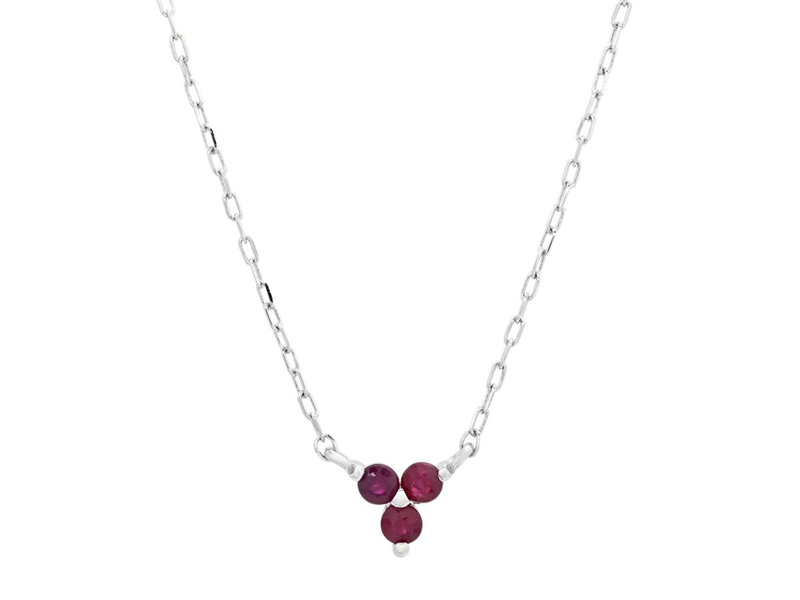NECKLACE, 18K white gold, 3 round faceted rubies, height 4,5 mm, length 42/45 cm, weight 1,2 g.