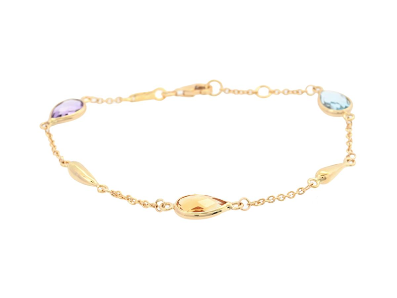 BRACELET, 18K gold, faceted amethyst, citrine and blue topaz, length 17/18 cm, weight 3,6 g.