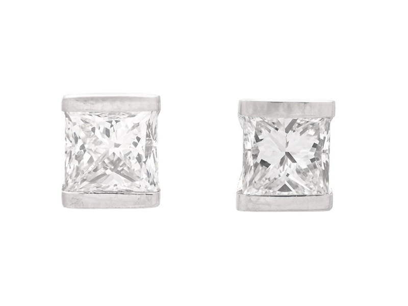 SOLITAIRE EARRINGS, 18K white gold, diamonds approx. 0,91 ctw, approx. TW-W(G-H)/VS-SI, weight 1,6 g, pushback, one the diamond with scratch on the table.