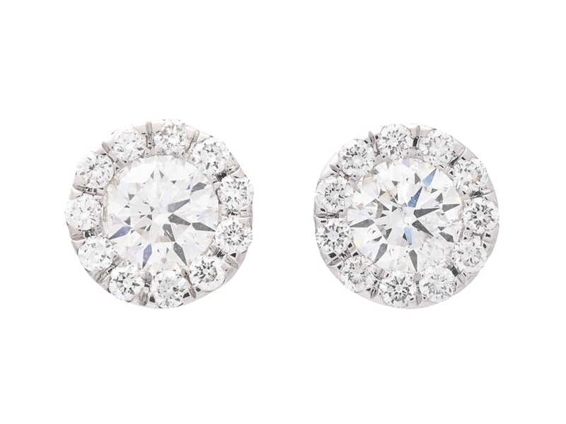 EARRINGS, 18K white gold, 2 brilliant cut diamonds approx. 0,75 ctw, approx. TW-W(G-H)/SI-P, 22 brilliant cut diamonds approx. 0,36 ctw, pushback, weight 1,8 g.
