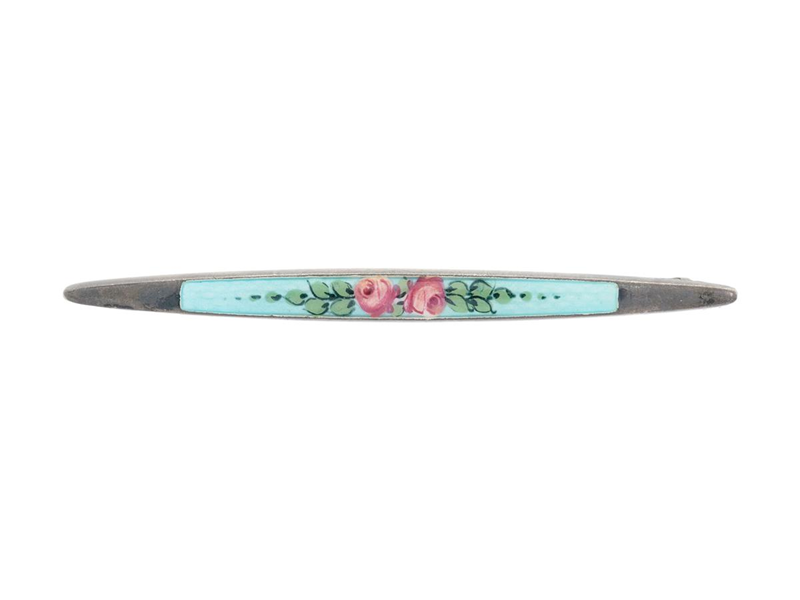 BROOCH, silver, enamel, roses, length 60 mm, weight 2,6 g.