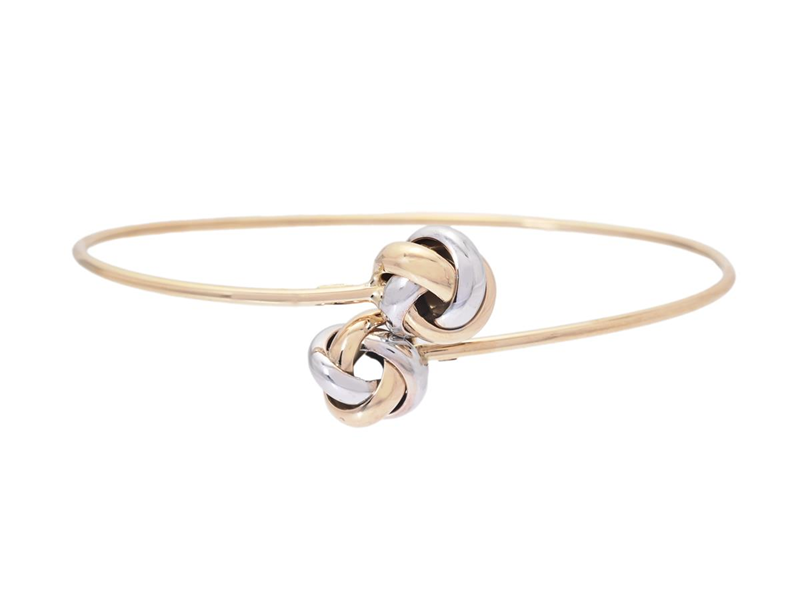 BANGLE, 18K gold/white gold, knots, open model, inner measurement approx. 58,0 x 45,0 mm, weight 5,5 g.