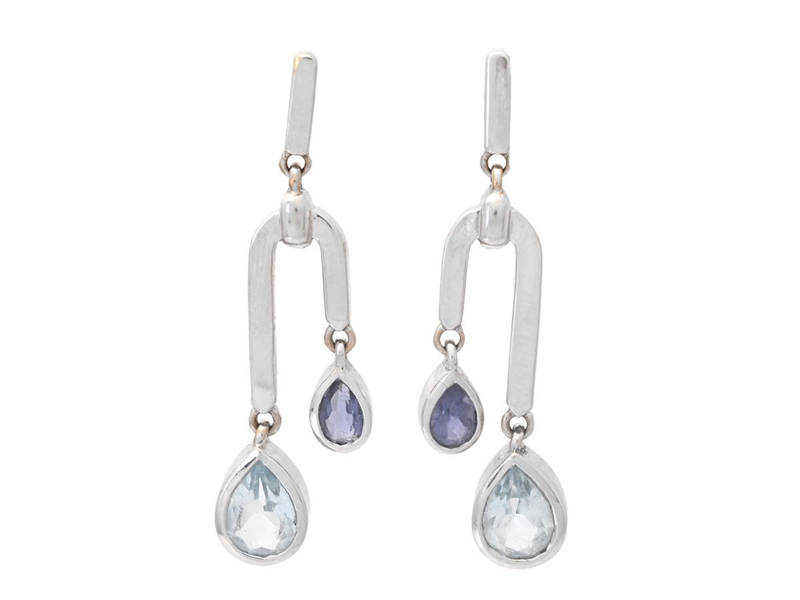 EARRINGS, 18K white gold, pear shaped topazes and iolites, height approx. 30 mm, pushback, weight 4,8 g.