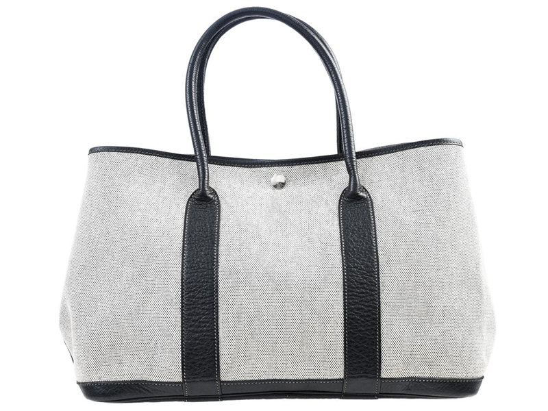BAG, HERMÈS, Garden Party Tote Bag, beige canvas, black leather, 36x24x16 cm, marked G in Square, year 2003, stains on lining.