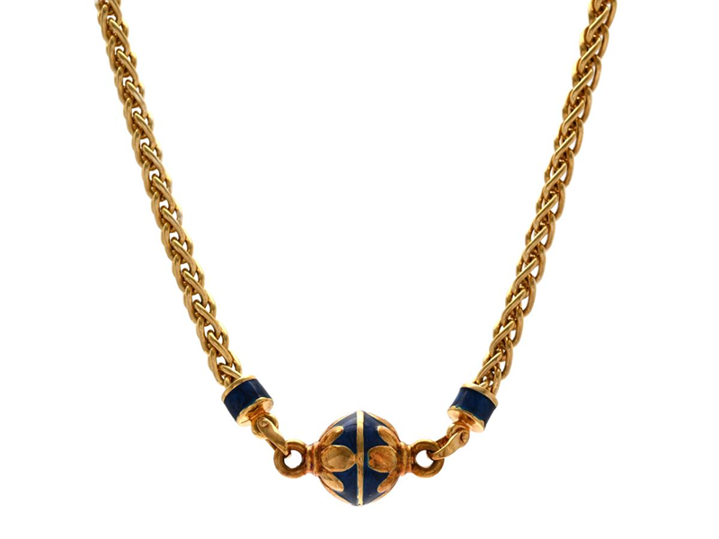 NECKLACE, 18K gold, wheat chain, enamel decor, length 46 cm, weight 24,6 g.