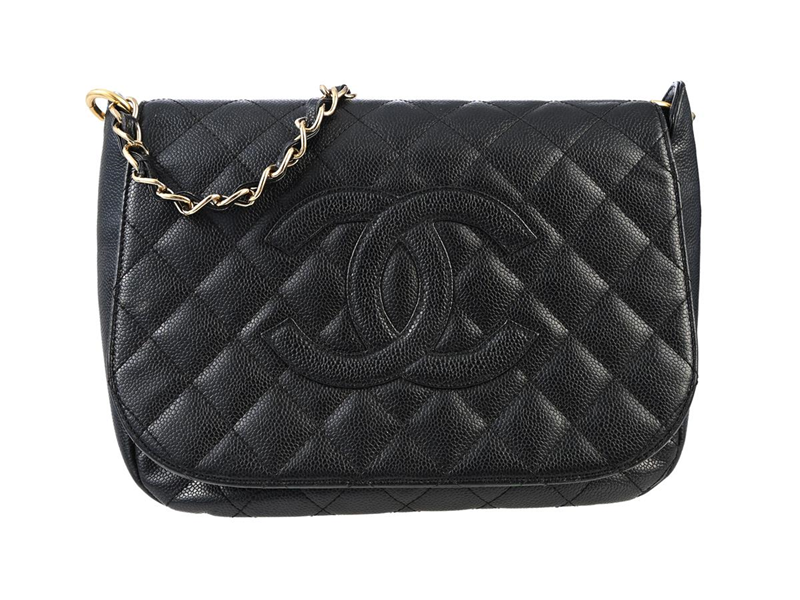 BAG, CHANEL, Flap Bag Messenger, black quilted caviar leather, gold-tone hardware, 27x22x9 cm, hologram-marked 8206325, year 2003-2004, certificate.