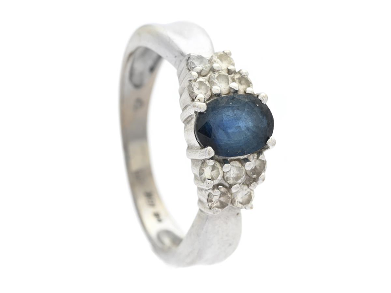 RING, 18K white gold, oval-cut sapphire approx. 0,70 ct, 10 brilliant cut diamonds approx. 0,30 ctw, approx. TW-W/VS, Engelbert, size 16,5 mm, weight 4,4 g.