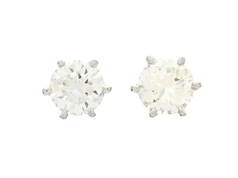 SOLITAIRE EARRINGS, 18K white gold, brilliant cut diamonds approx. 0,75 ctw TW- TCa/VVS, pushback, weight 1,2 g. Notch on culetten, skew pushback.