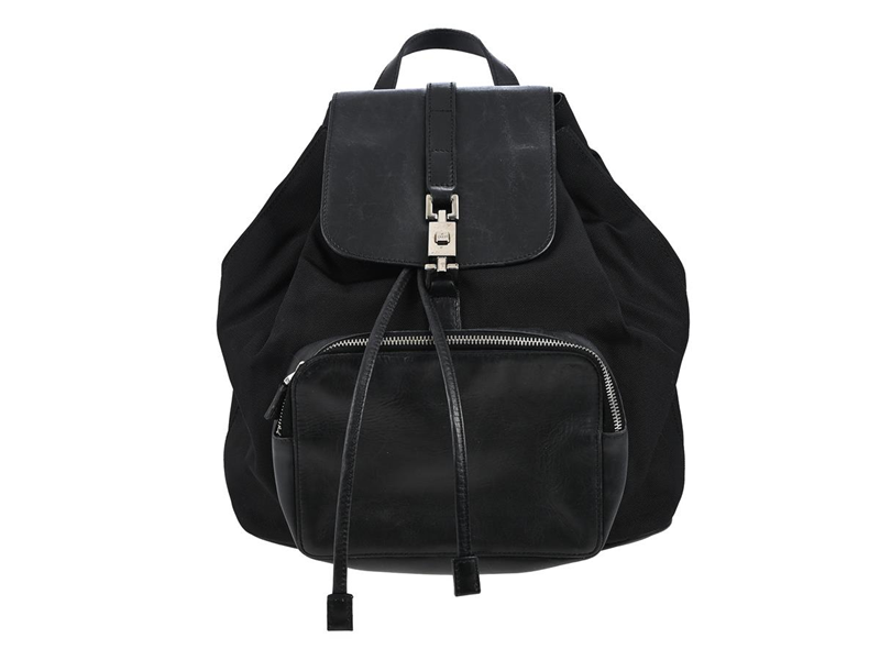 BAG, GUCCI, Jackie Drawstring Backpack, black nylon, black leather, silver-tone hardware, 24x31x9 cm, marked 008-0245, signs of wear.
