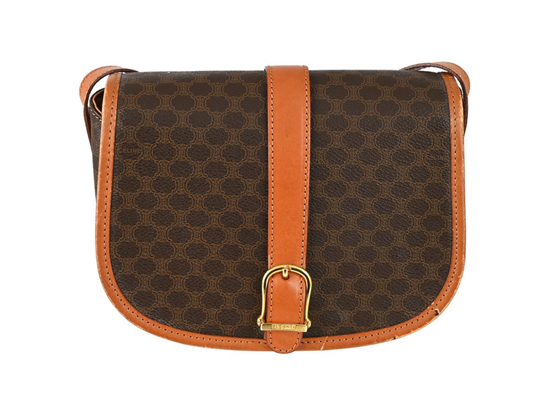 BAG, CELINE, Vintage Flap Crossbody Bag, brown canvas, brown leather, gold-tone hardware, 20x17x6 cm.
