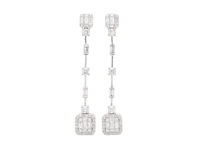 EARRINGS, 18K white gold, 86 brilliant cut diamonds approx. 1,29 ctw, approx. TW-TCr/VS-SI, pushback, height 40 mm, weight 4,7 g.