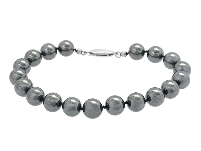 BRACELET, hematite beads, clasp in silver, length 19 cm, weight 26,6 g.