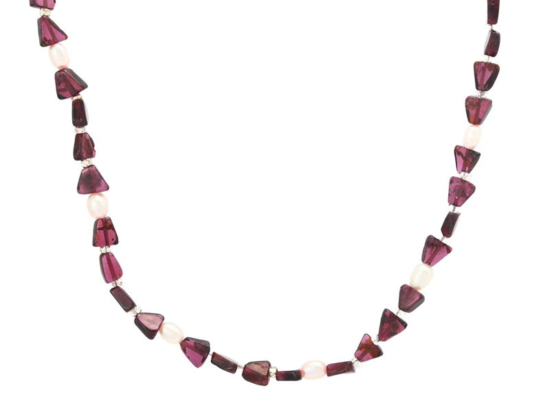 GEORG RAGNAR LEVI, necklace, garnets, cultured freshwater pearls, clasp in silver, length 46 cm, weight 14,5 g. (d)