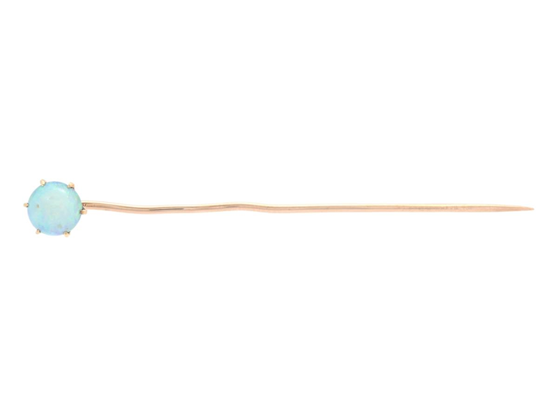 PIN, 9K/14K gold, with cabochon cut opal, length approx. 5,5 cm, weight 1,0 g, somewhat skew pin.