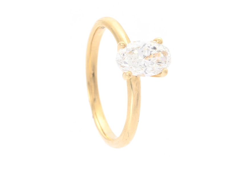 SOLITAIRE RING, 18K gold, oval-cut diamond 1,01 ct, approx. River(E)/SI2, GIA laser inscription 1519293330 and certificate, size 16,75 mm, weight 2,9 g.