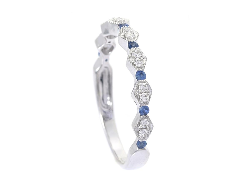 RING, 18K white gold, sapphires approx. 0,11 ctw, brilliant cut diamonds approx. 0,11 ctw, approx. TW-TCr/SI, size 17,5 mm, weight 2,0 g.
