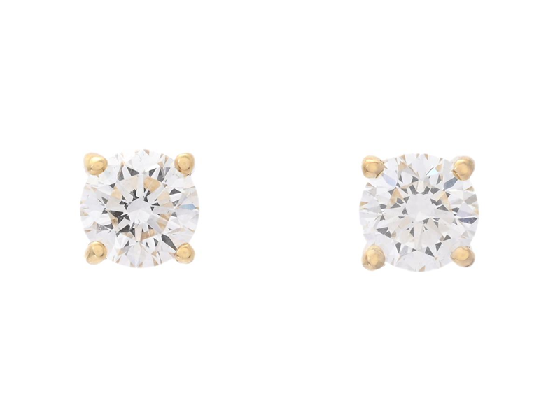 SOLITAIRE EARRINGS, 18K gold, 2 brilliant cut diamonds 1,00 ctw, approx. TW(G)/VS2, GIA laser inscription 7526874419, 1525891017 and dossier, pushback, weight 1,7 g,