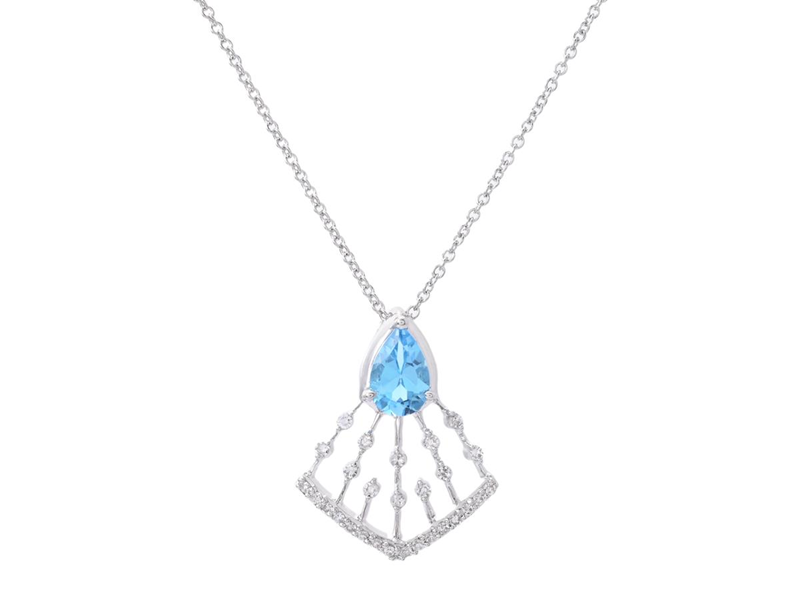 PENDANT/CHAIN, 18K white gold, drop shaped faceted blue topaz approx. 0,45 ct, single cut diamonds approx. 0,09 ctw, height 16,0 mm, chain 42 cm, weight 2,4 g.