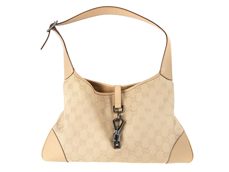 BAG, GUCCI, Jackie Hobo Bag, GG fabric, beige leather, silver-tone hardware, 34x19 cm, marked 28628, stain on fabric.