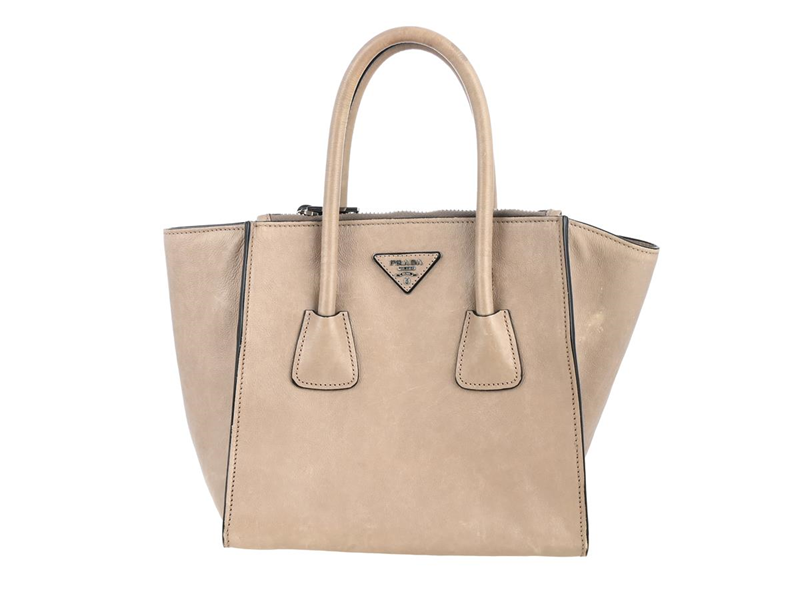 BAG, PRADA, Twin Pocket Double Handle Tote, beige leather, silver-tone hardware, 24x23x19, certificate, shoulder strap, receipt from 2013, dustbag.