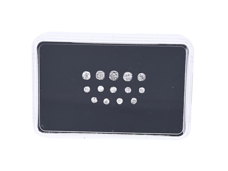 14 DIAMONDS, antique cut, 1,27 ctw. approx. TW-TCr/VS-P, several has notches and damages.