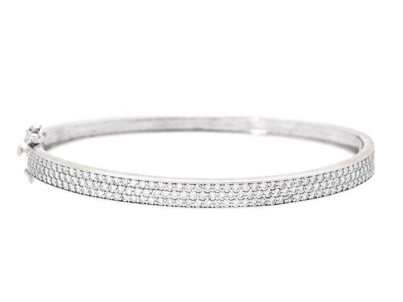 BANGLE, 18K white gold, 151 brilliant cut diamonds approx. 1,50 ctw, approx. TW-W/SI, measurements 4,5-5,5 cm, weight 10,9 g, lock somewhat loose. signs of wear.