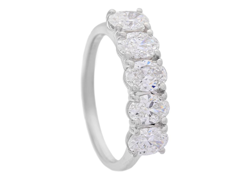 RING, platinum, 5 oval brilliant cut diamonds 1,50 ctw, River(D-E)/SI1, 5 x GIA Diamond Dossier 1535002573, 7521991028, 6532413503, 3535161657 and 5533563696, size 16,75 mm, weight 4,9 g.