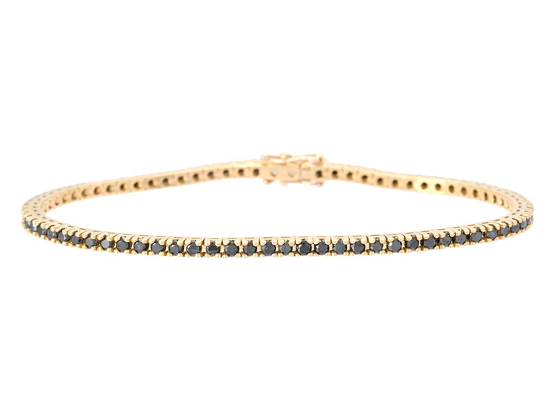 TENNIS BRACELET, 18K gold, 76 brilliant cut black diamonds approx. 1,90 ctw, length 18,5 cm, weight 11,2 g, diamonds with notches, naturals and inclusions that reach the surface.