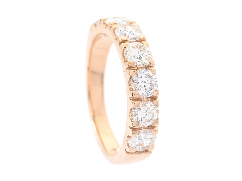 ETERNITY RING, 18K gold, 7 brilliant cut diamonds approx. 1,49 ctw, approx. TW-TCa/VS-SI, size 16,75+ mm, weight 4,2 g, some diamonds with notch.