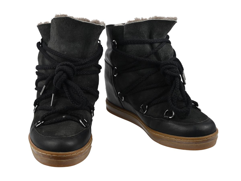 SHOES, ISABEL MARANT, Snow Ankle boots, black suede, sheep fur, size 37, spare shoe laces red, dustbag, box.