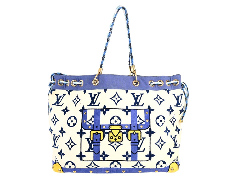 BAG, LOUIS VUITTON, Eponge Cabas, Limited Edition 2005, blue, white terry, gold-tone hardware, 49x40x19 cm, signs of wear.